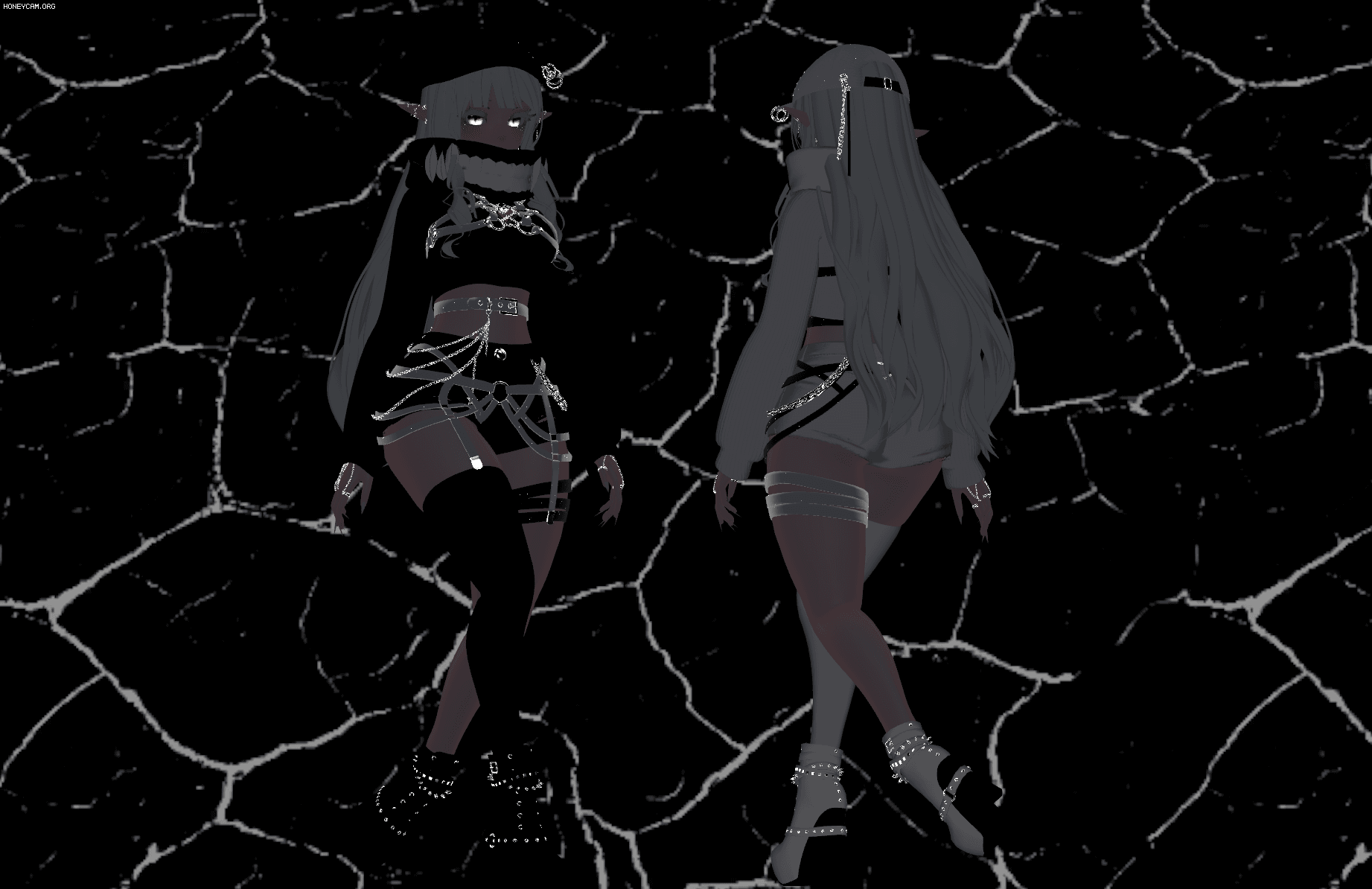 Cap , top , shorts , bra , shorts , boots , harness (top,bot) , scarf , elfears , change cloth color Toggles